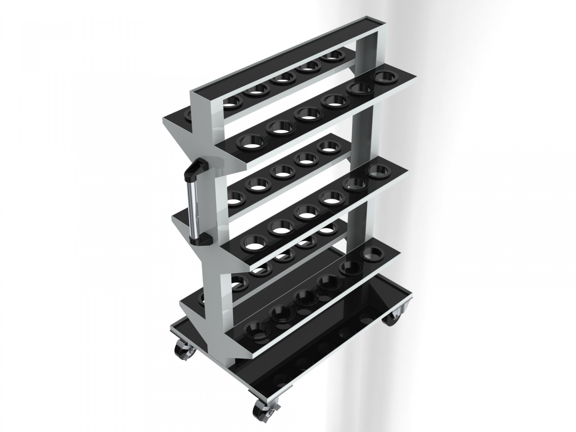 Carrinho tipo torre porta ferramentas com 6 bandejas medindo (AxCxL)1300x840x560mm, para transportar ferramentas de usinagem: